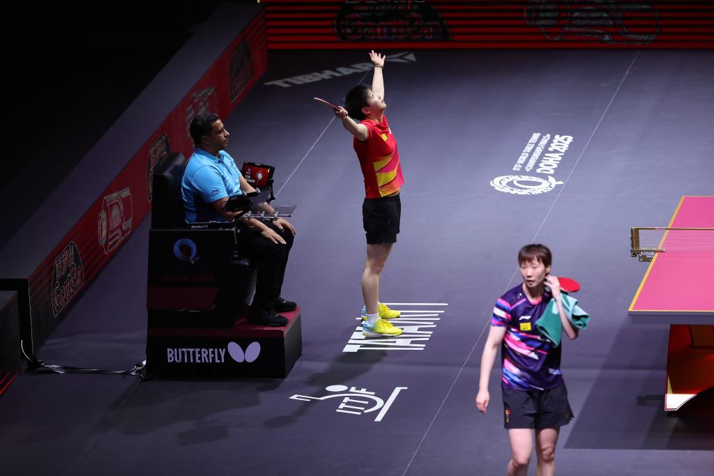 我曾在東京奧運會場邊記錄孫穎莎初登大賽的銳氣,也在德班世乒賽見證她首次問鼎女單。如今在多哈,我又一次站在賽場邊,看她從稚嫩走向成熟,從追趕者變成被追趕者,看她一次次揮拍、一次次躍起、一次次高高舉起獎杯,把國乒的旗幟一次次穩穩插在最高領獎臺上。