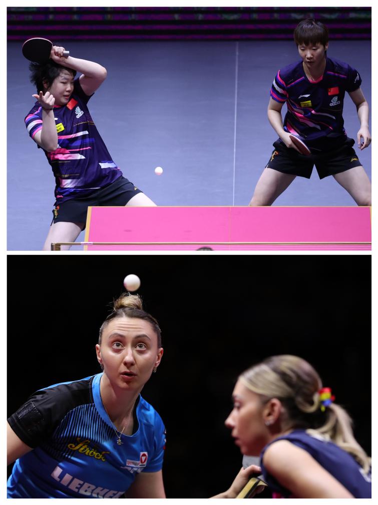 ↑王曼昱/蒯曼對戰跨國組合波爾卡諾娃(左)/斯佐科斯