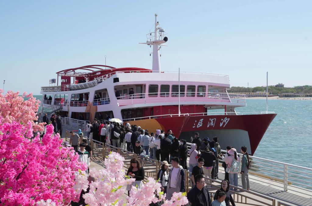 5月1日,游客在河北省秦皇島市北戴河區一旅游碼頭準備乘船出海觀光。新華社記者 楊世堯 攝