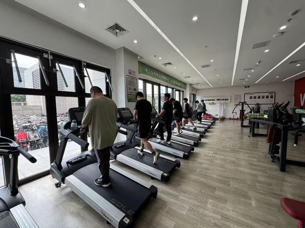 在上海市徐匯區康健街道的“長者運動健康之家”,老人們在健身時交流(資料圖)。新華社記者 王翔 攝