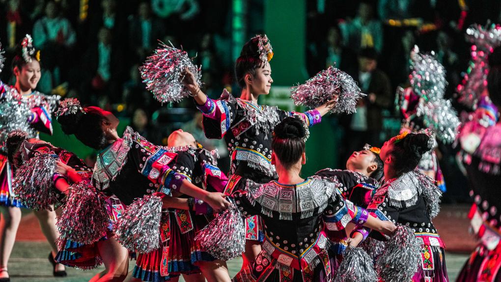 演員在大地流彩·2025年全國和美鄉村籃球大賽(村BA)啟動儀式上進行歌舞表演。新華社記者 陶亮 攝