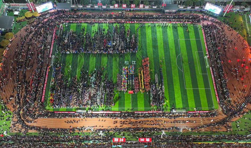 這是2025年貴州“村超”開幕式現場(無人機照片)。新華社記者 楊文斌 攝