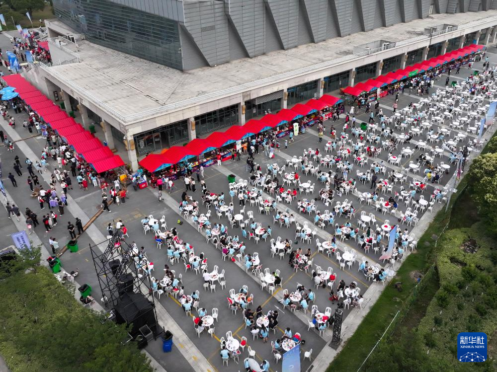 這是6月14日拍攝的江蘇淮安“蘇超”市集(無人機照片)。