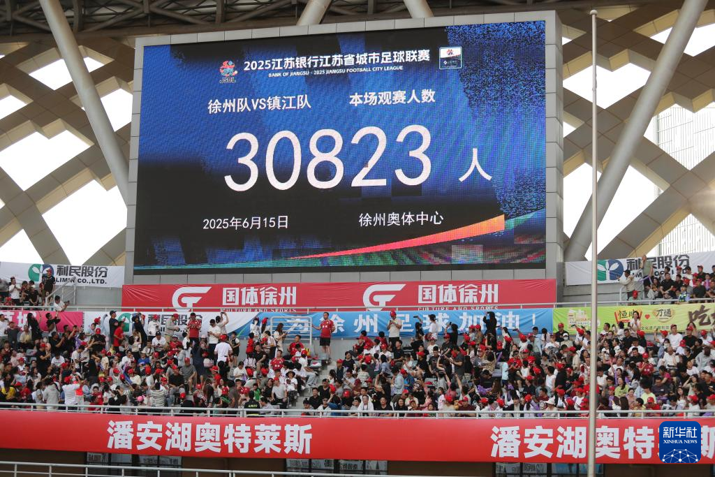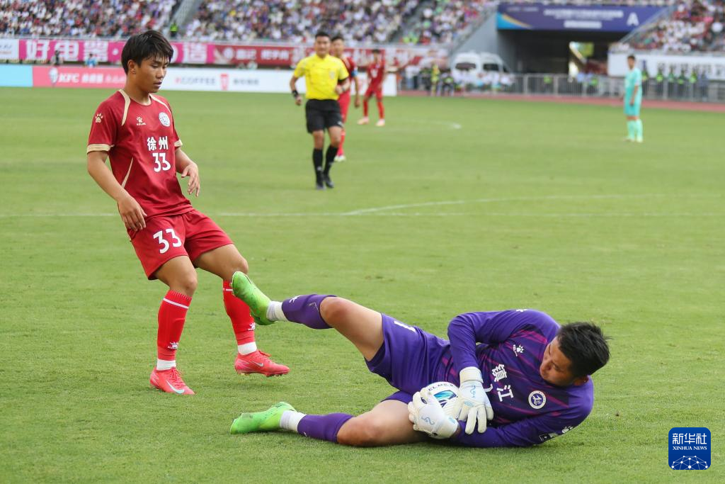 當日,在江蘇徐州舉行的2025江蘇省城市足球聯賽第四輪比賽中,徐州隊1比0戰勝鎮江隊。
