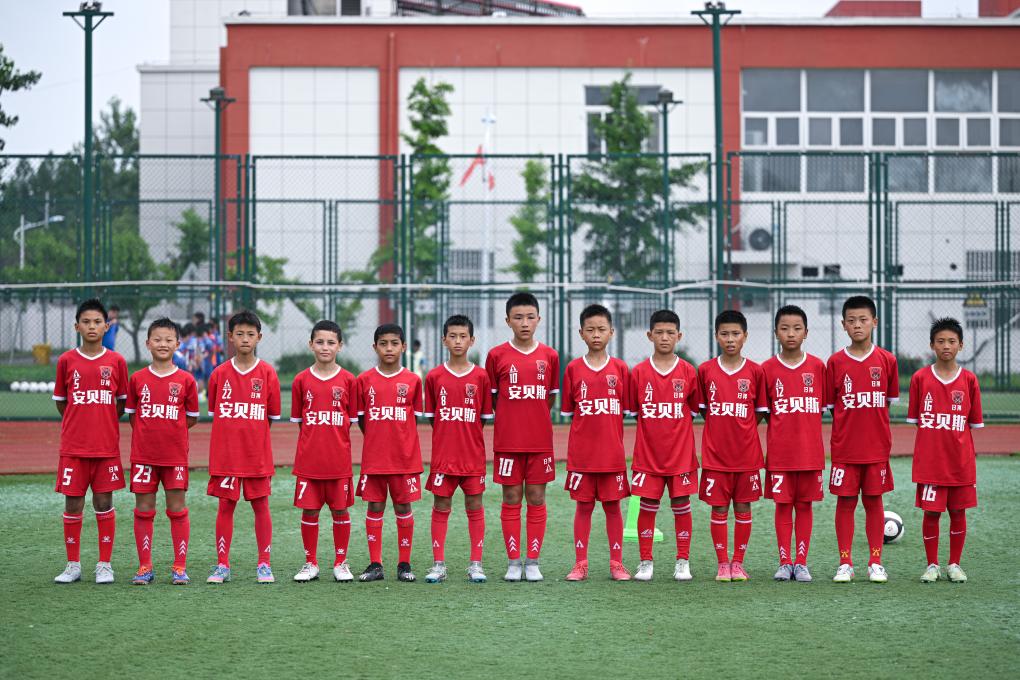 ↑6月7日,安貝斯足球俱樂部小球員在訓練場上合影。新華社記者 辛悅衛 攝