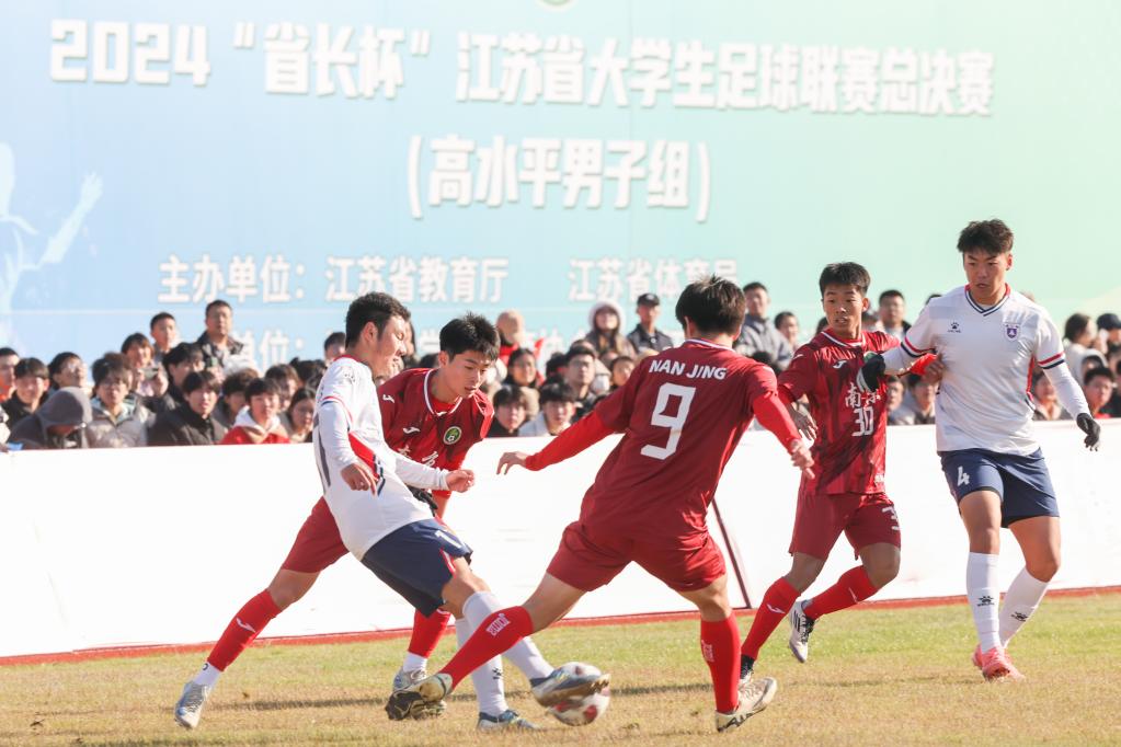 ↑2024年12月8日,2024“省長杯”江蘇省大學生足球聯賽總決賽(高水平男子組)冠軍賽比賽現場。新華社發(胡瀟攝)