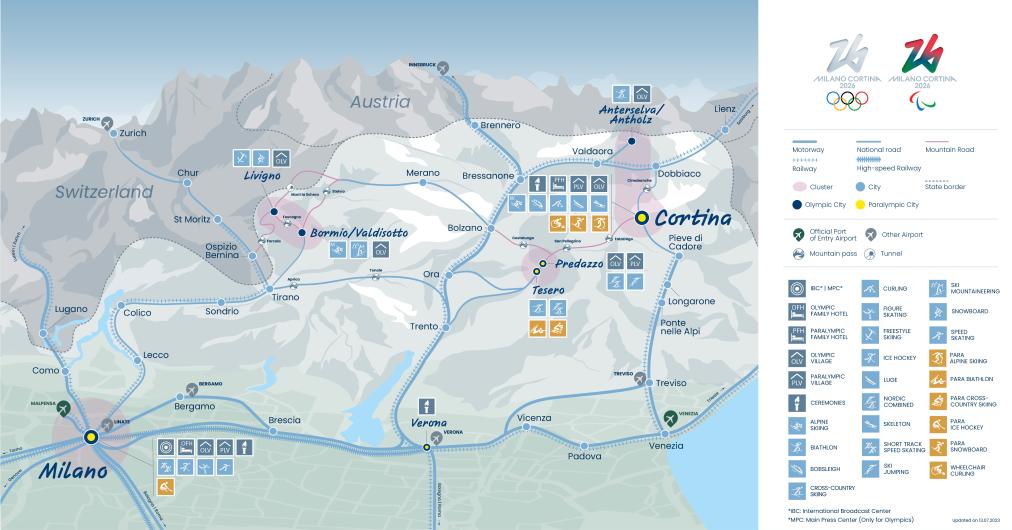 據介紹,米蘭冬奧會設置8個大項、16個分項和176個小項。比賽分別安排在米蘭、瓦爾泰利納、費耶美山谷和科爾蒂納等四大賽區、八個舉辦地。賽區之間通勤十分不便,平均相隔250至400公里,單程平均耗時5小時以上,且多為山路。