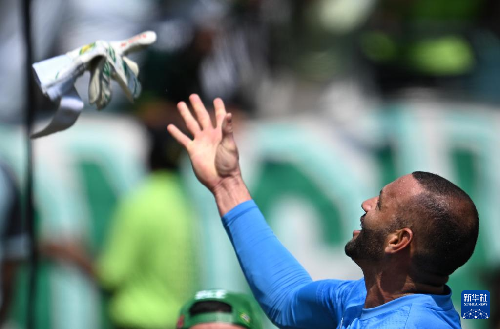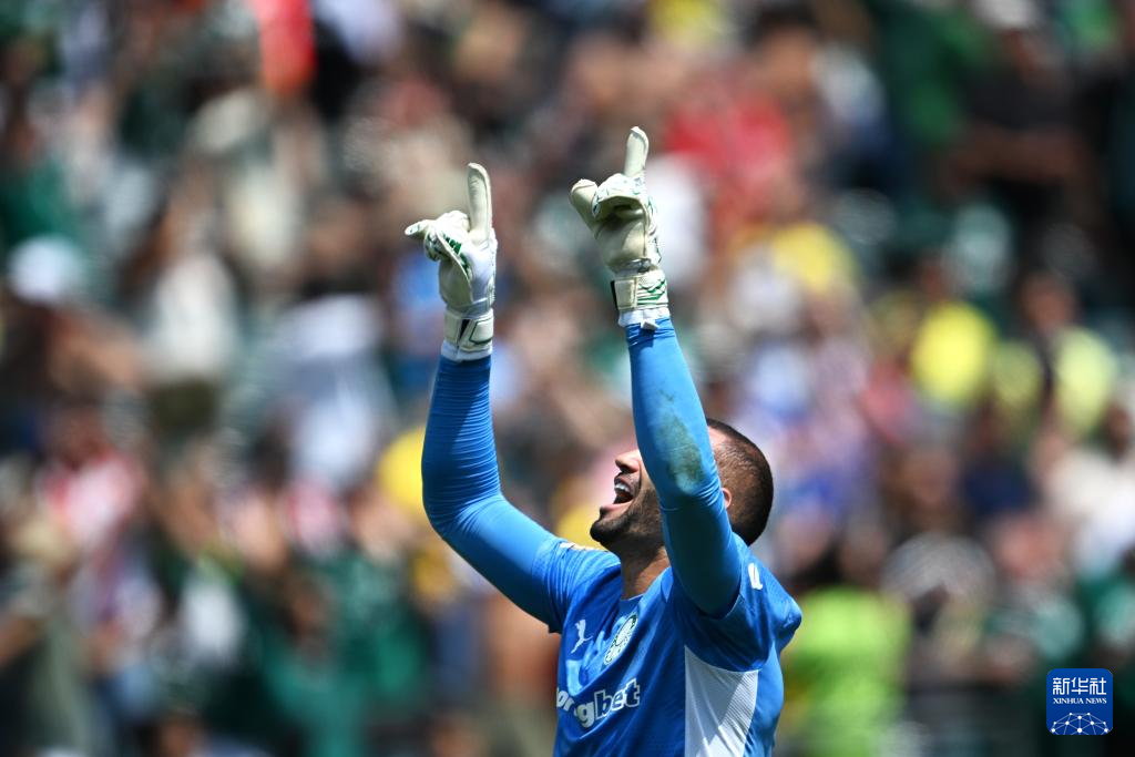 6月28日,帕爾梅拉斯隊守門員韋弗頓慶祝球隊勝利時將手套拋向觀眾。