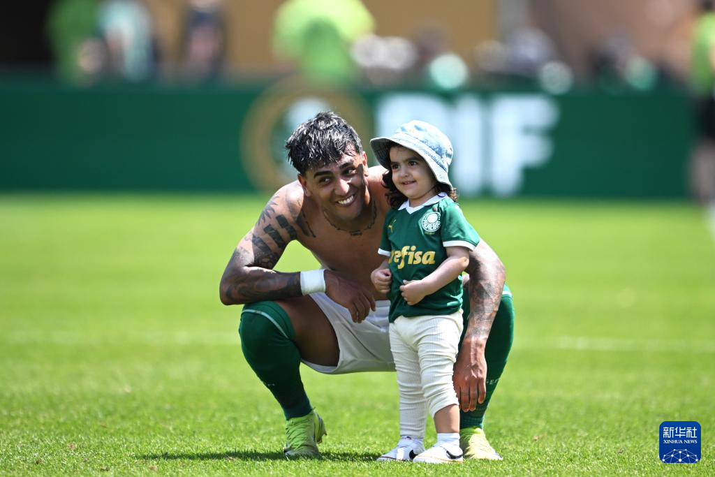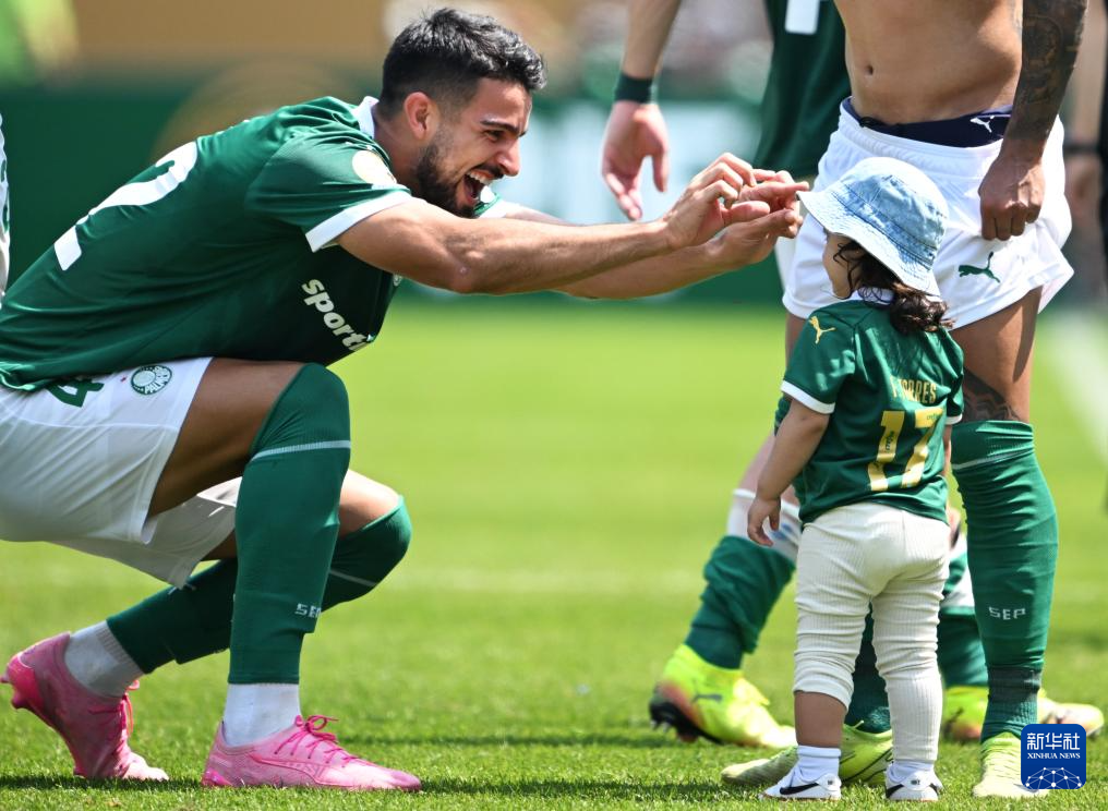 6月28日,帕爾梅拉斯隊球員何塞·洛佩斯(左)賽后慶祝球隊勝利。