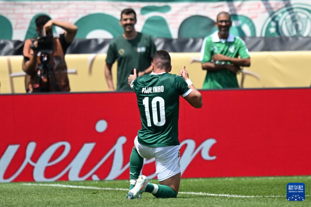 6月28日,帕爾梅拉斯隊球員保利尼奧在比賽中慶祝得分。