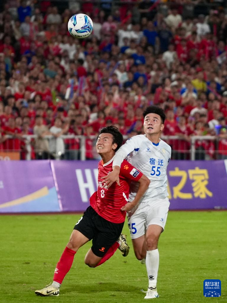 6月29日,南通隊球員李賢成(左)和宿遷隊球員張文(右)在比賽中拼搶。新華社發