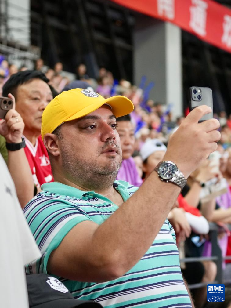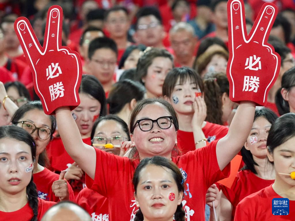 6月29日,球迷在場邊為宿遷隊加油。新華社發