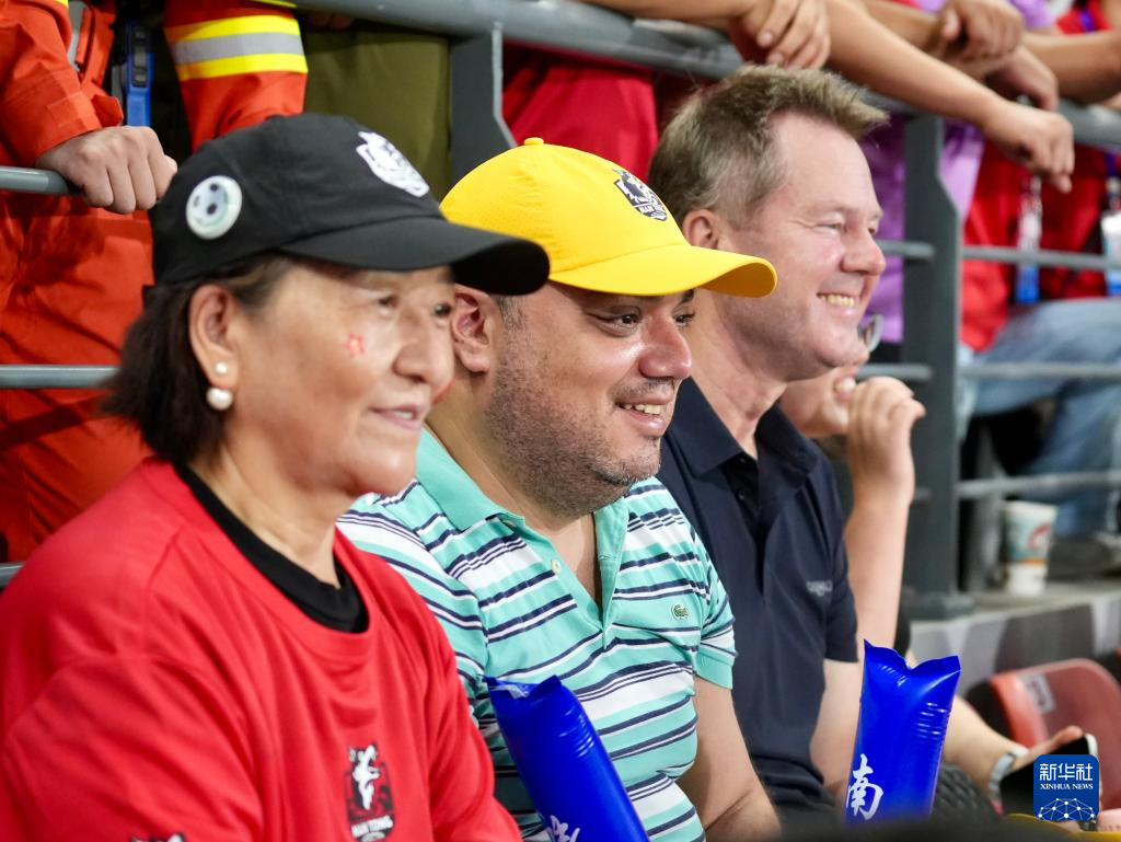 6月29日,外國球迷在場邊觀看比賽。新華社發
