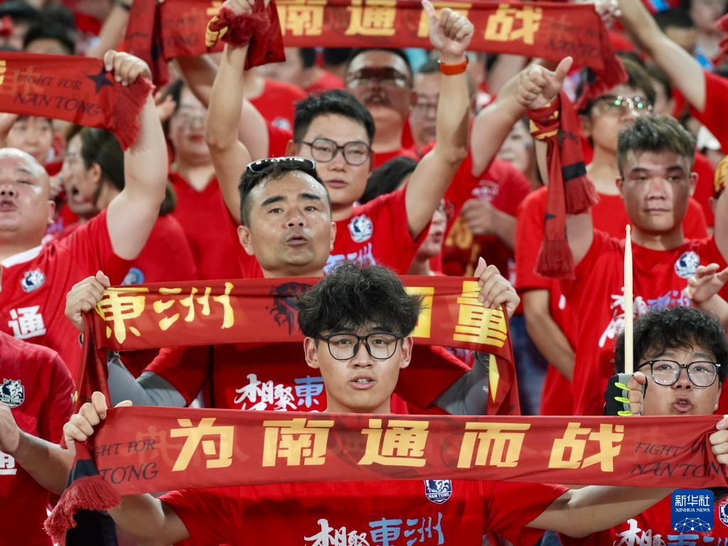 6月29日,球迷在場邊為南通隊加油。新華社發