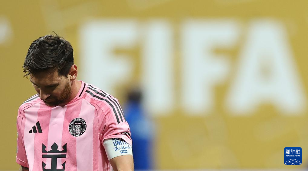 6月29日,邁阿密國際隊球員梅西(中)在上半場結束后離場。新華社記者 李明 攝