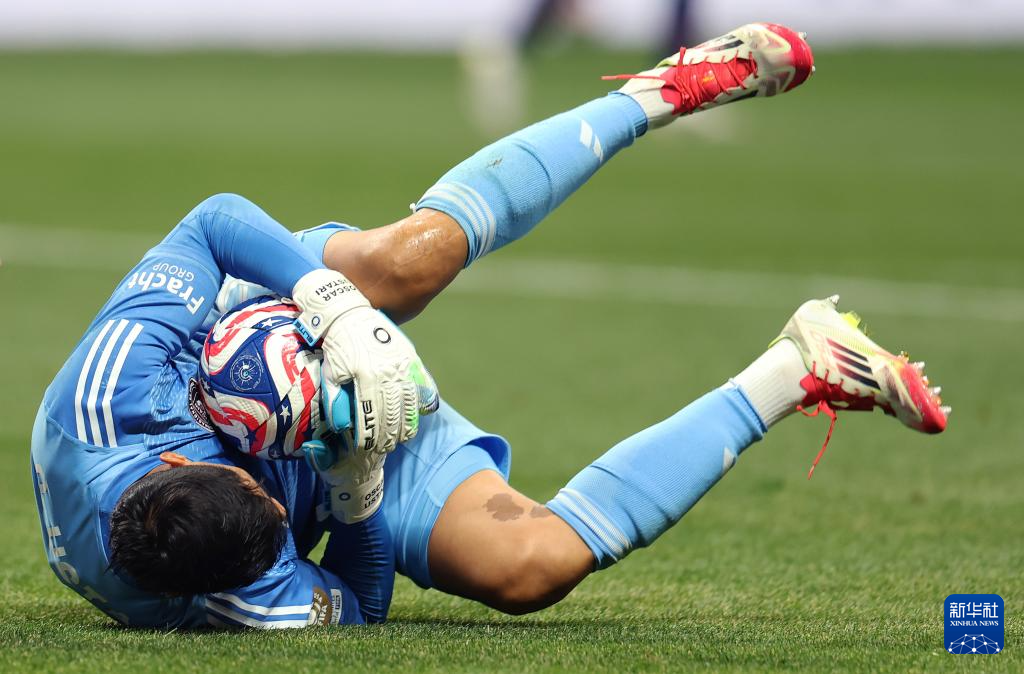 6月29日,邁阿密國際隊門將烏斯塔里在比賽中護球。新華社記者 李明 攝