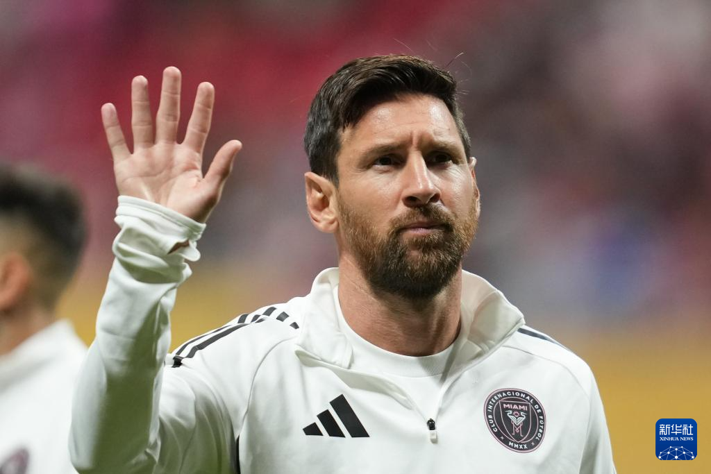 6月29日,邁阿密國際隊球員梅西在比賽前熱身時向球迷致意。新華社記者 黃宗治 攝