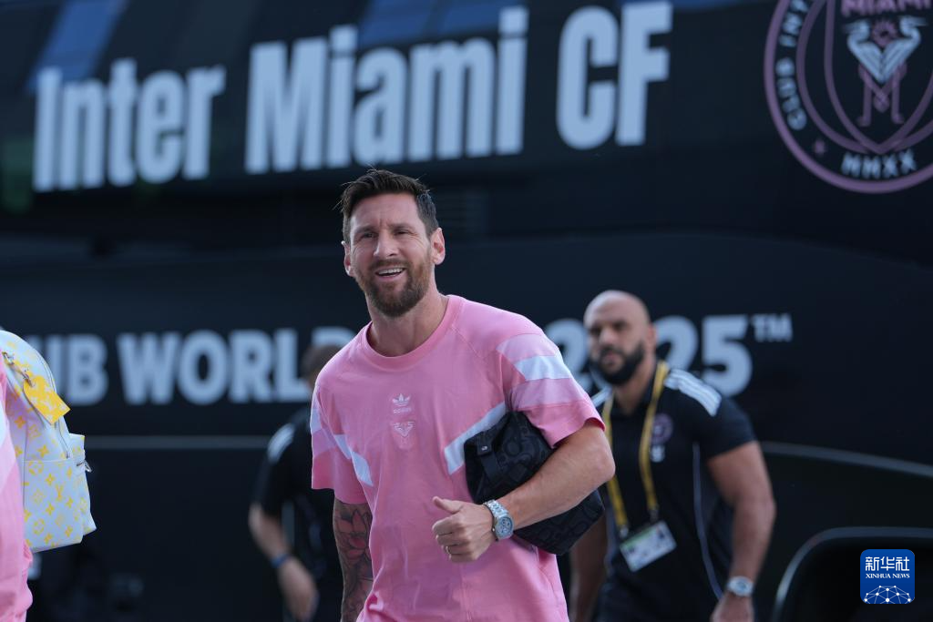 6月29日,邁阿密國際隊球員梅西在比賽前到達球場。新華社記者 黃宗治 攝