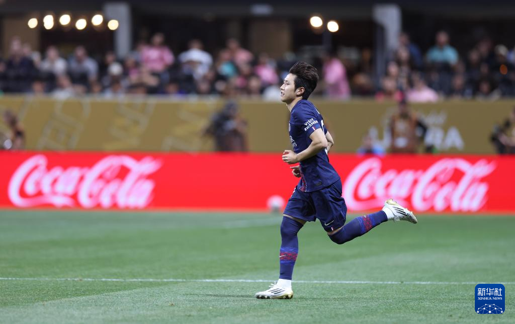 6月29日,巴黎圣日耳曼隊球員李剛仁替補上場。新華社記者 李明 攝