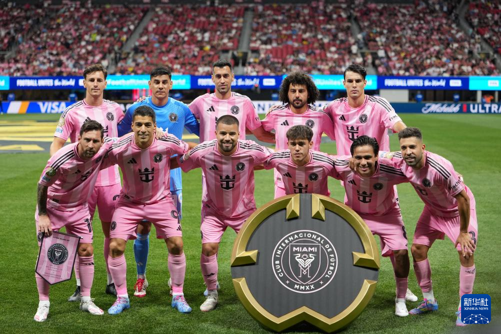 6月29日,邁阿密國際隊首發球員在比賽前合影。新華社記者 黃宗治 攝