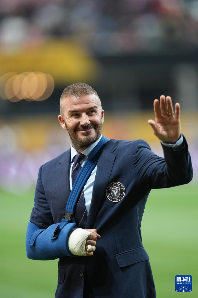 6月29日,邁阿密國際足球俱樂部主席大衛·貝克漢姆在比賽前向觀眾致意。新華社記者 黃宗治 攝