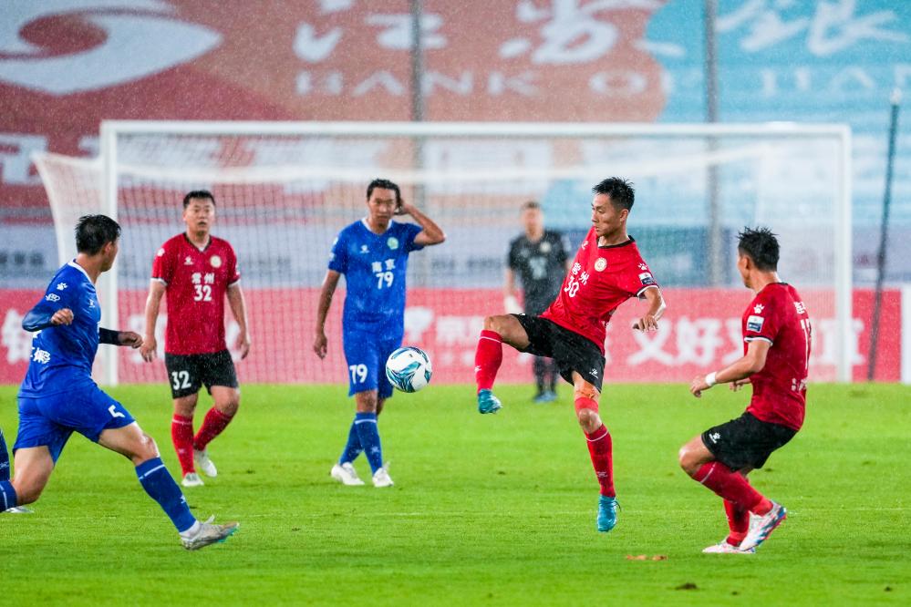 ↑6月21日,江蘇省城市足球聯賽第五輪比賽中,常州隊主場0比4不敵南京隊。新華社記者 李博 攝