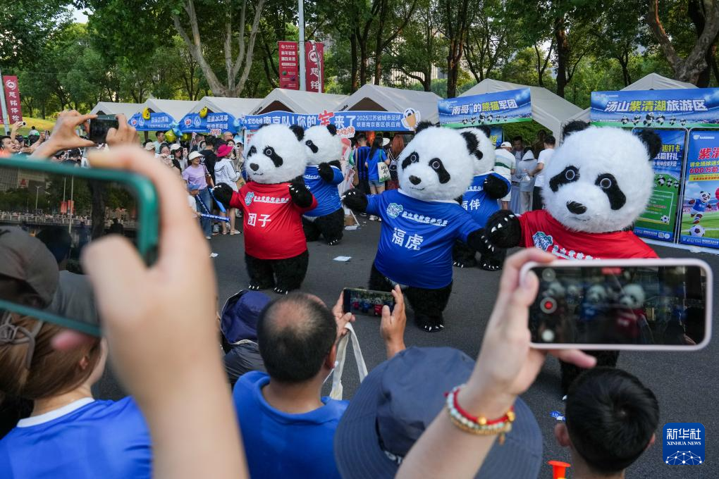 7月5日,比賽前,球迷在場外的文化市集觀看表演。