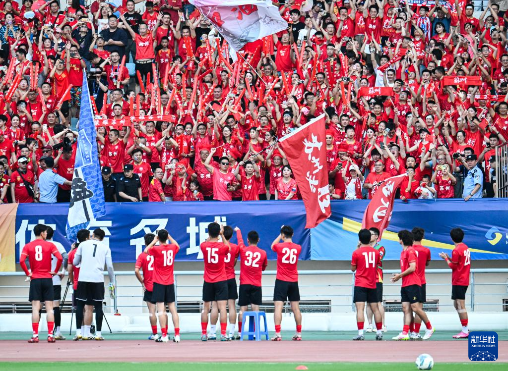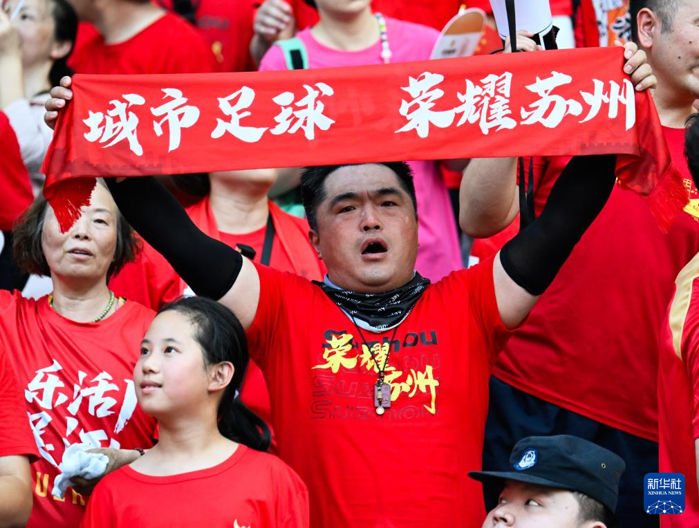 7月5日,蘇州隊球員在比賽前向球迷致意。