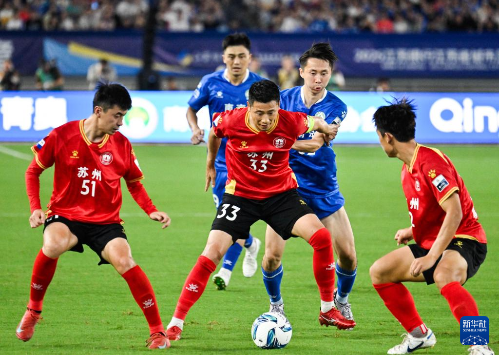 7月5日,蘇州隊球員寇程(中)在比賽中進攻。