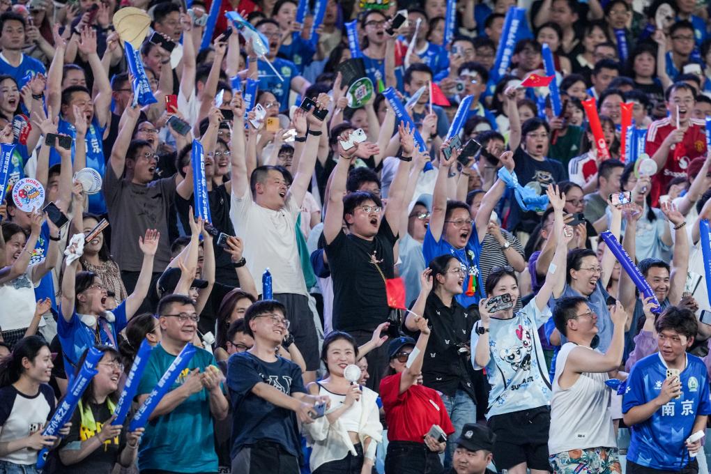 7月5日,球迷在南京奧體中心為球隊加油。 新華社記者 李博 攝