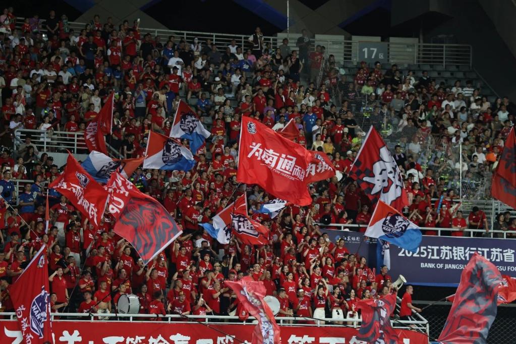 7月5日,在江蘇南京舉行的蘇超第六輪比賽中,南京隊主場0比0戰平蘇州隊。 新華社記者 李博 攝