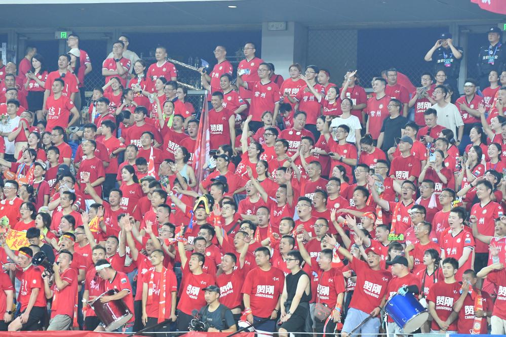 7月6日,常州隊球迷為球隊加油助威。 新華社發(劉臻睿攝)