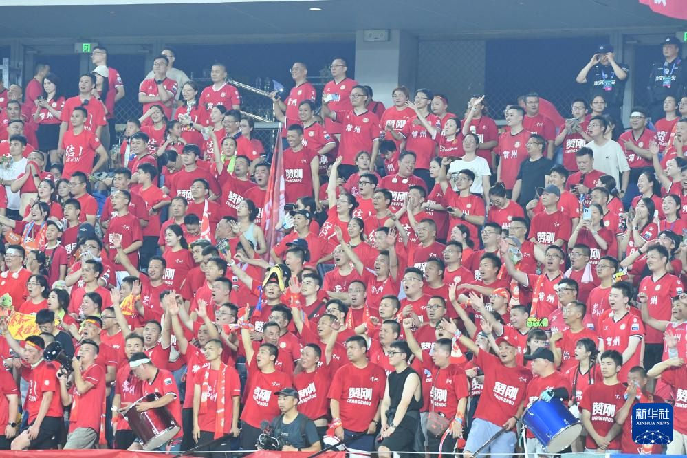 7月6日,常州隊球迷為球隊加油助威。新華社發(劉臻睿攝)