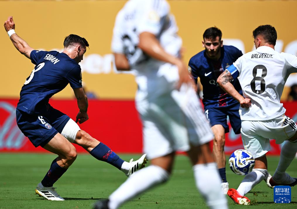 7月9日,巴黎圣日耳曼隊球員法比安·魯伊斯(左一)在比賽中破門得分。新華社記者 吳曉凌 攝
