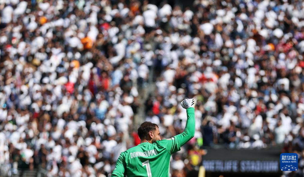 7月9日,巴黎圣日耳曼隊門將多納魯馬在比賽中慶祝隊友進球。新華社記者 李明 攝