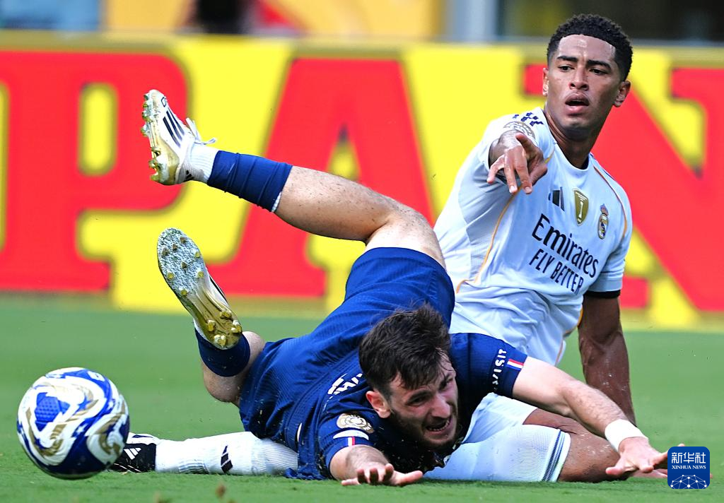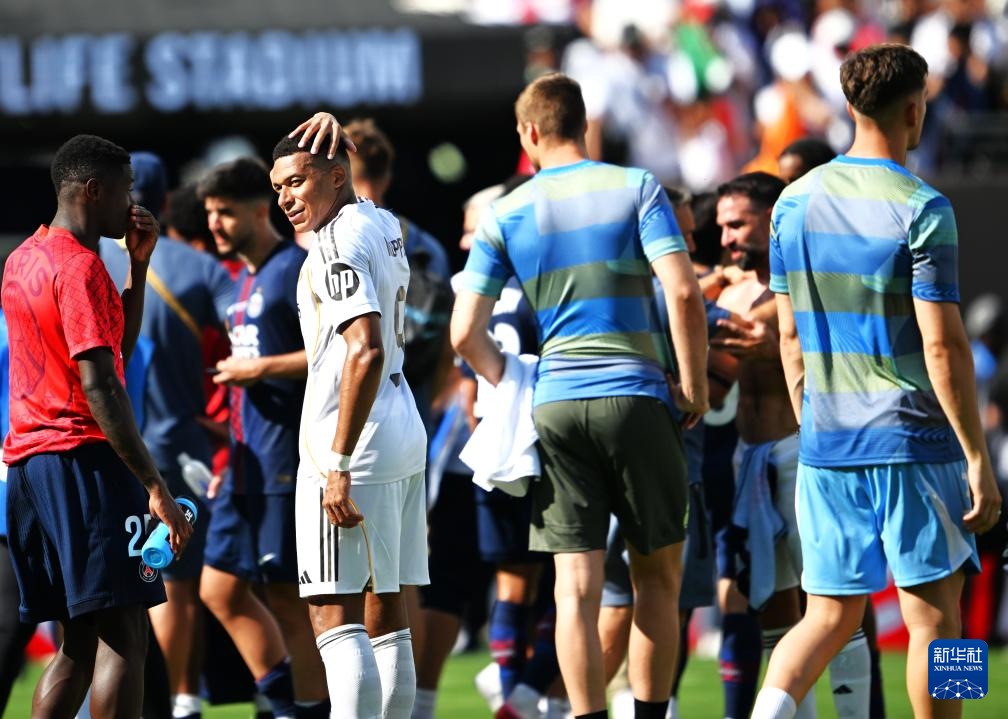 7月9日,皇馬隊球員姆巴佩(右)在比賽后。新華社記者 吳曉凌 攝