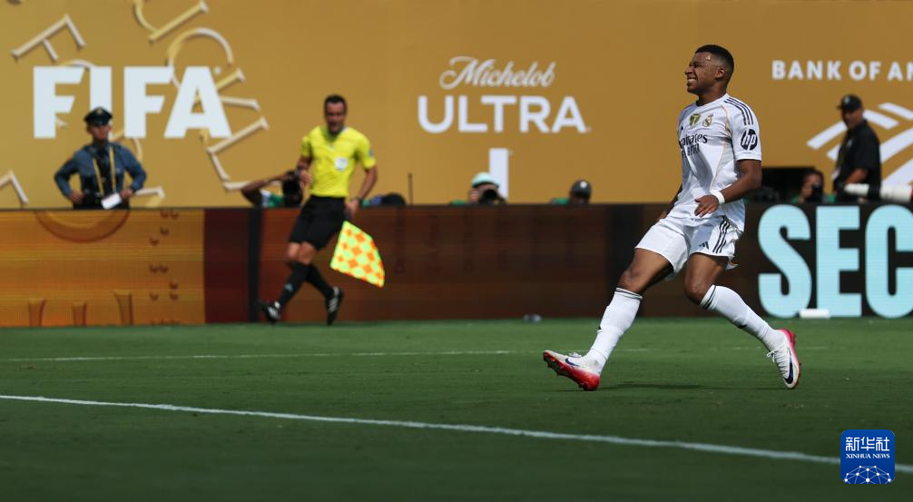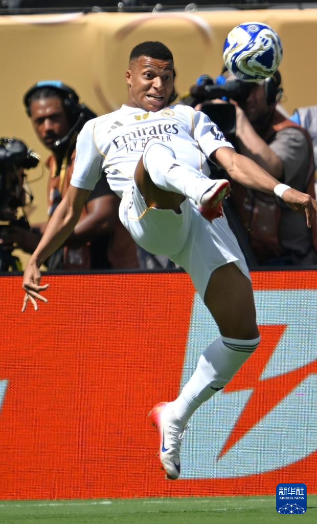 7月9日,皇馬隊球員姆巴佩在比賽中。新華社記者 吳曉凌 攝