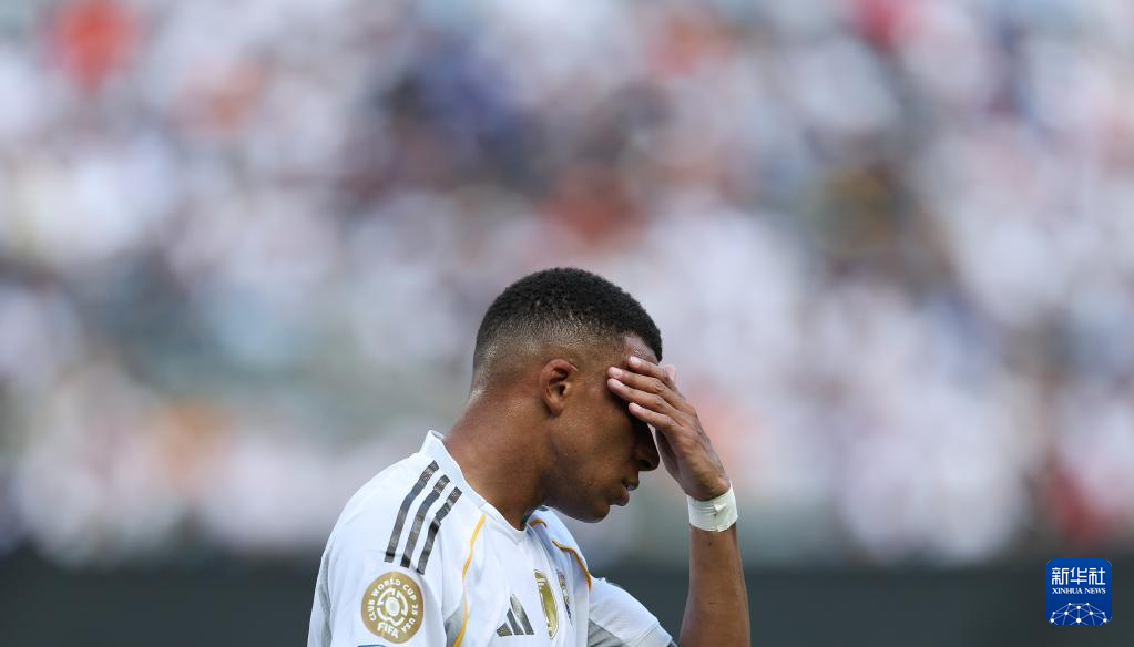 7月9日,皇家馬德里隊球員姆巴佩在比賽中錯失進球機會后。新華社記者 李明 攝