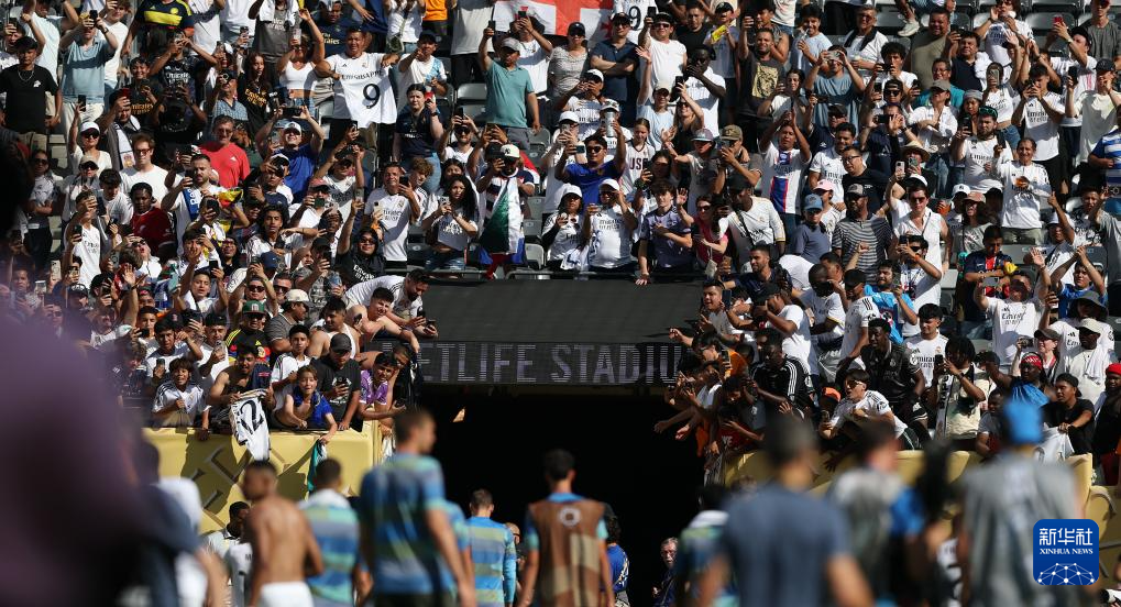 7月9日,觀眾賽后向離場的皇家馬德里隊球員致意。新華社記者 李明 攝