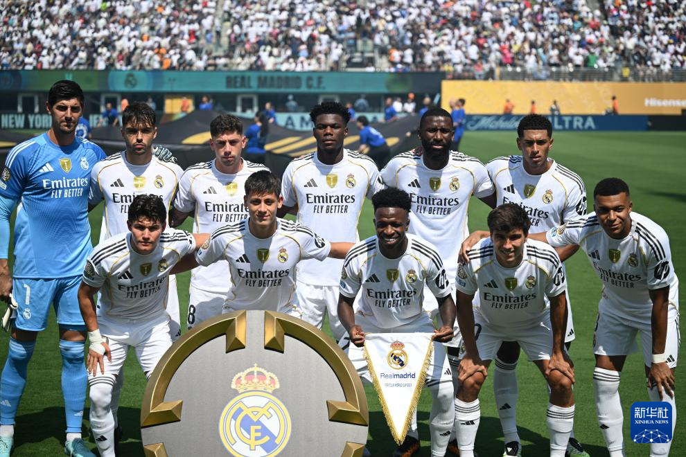 7月9日,皇馬隊首發球員在比賽前合影。新華社記者 吳曉凌 攝
