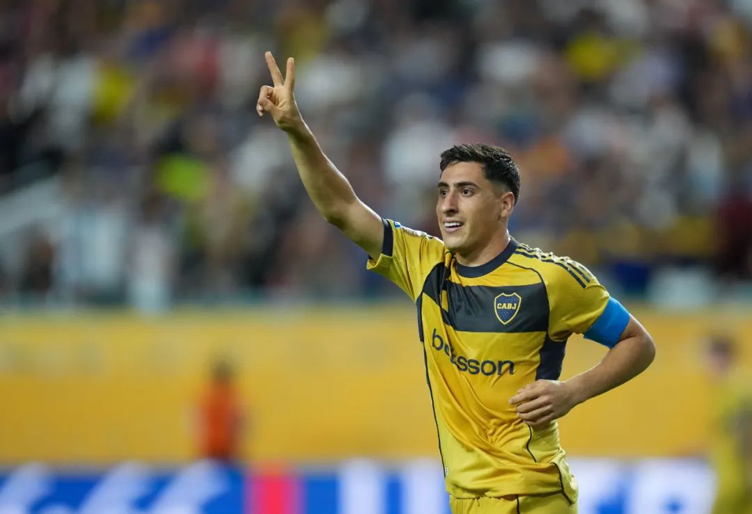6月21日,博卡青年隊球員梅倫鐵爾進球后慶祝。新華社記者 黃宗治 攝