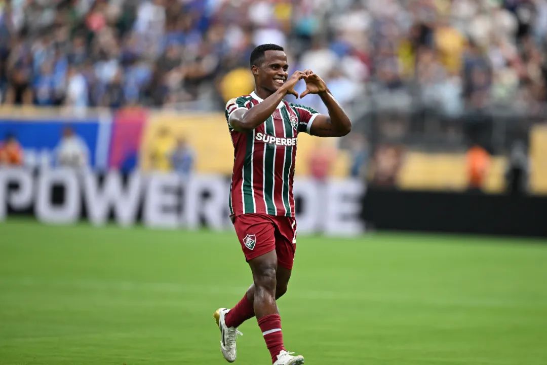6月22日,弗魯米嫩塞隊球員阿里亞斯慶祝進球。新華社記者 李睿 攝