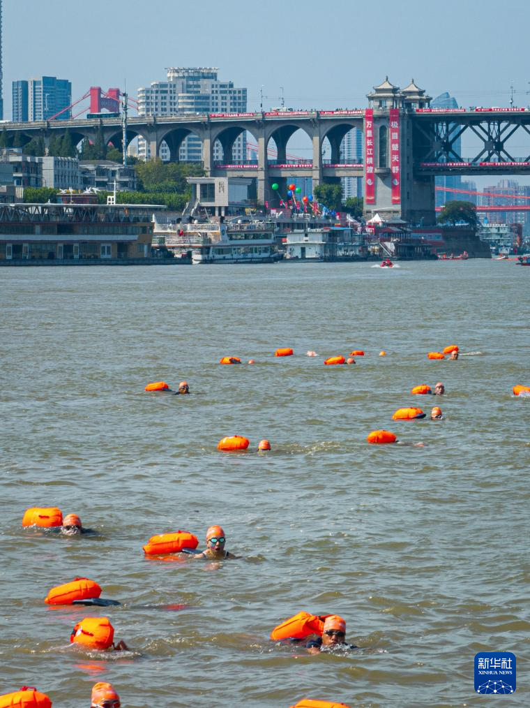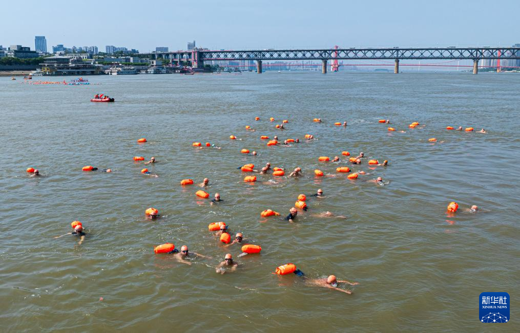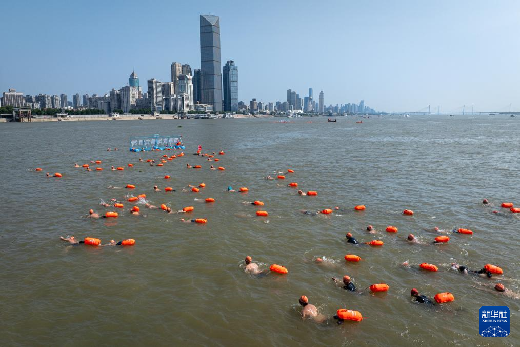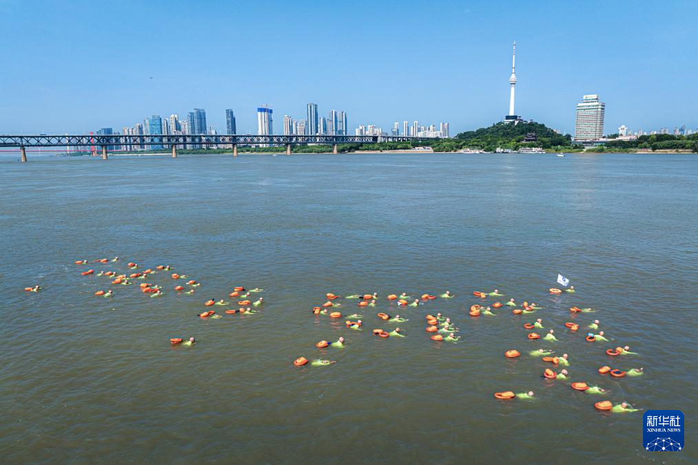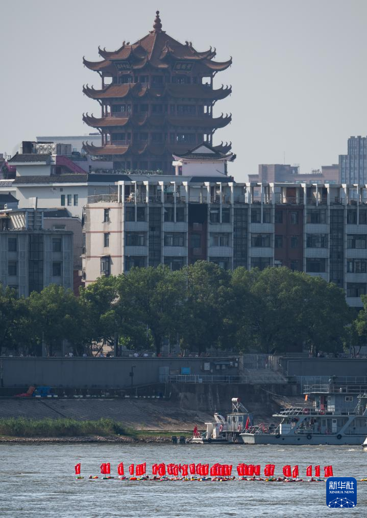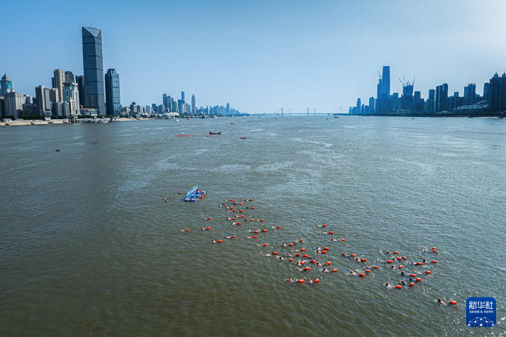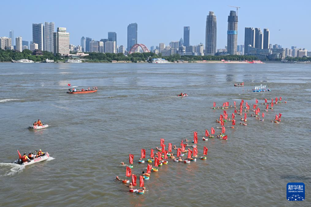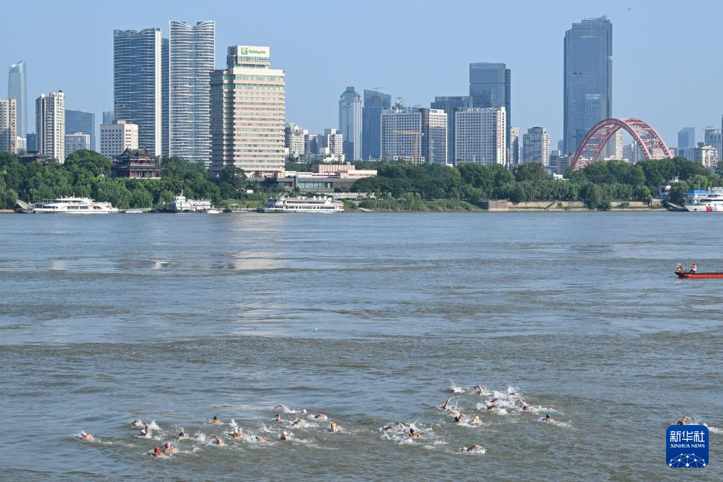 7月16日,選手們橫渡長江。新華社記者 杜子璇 攝