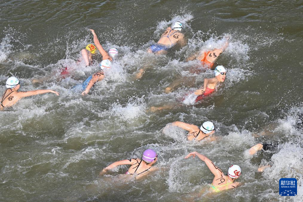 7月16日,參加女子搶渡賽的選手們在比賽中。新華社記者 杜子璇 攝