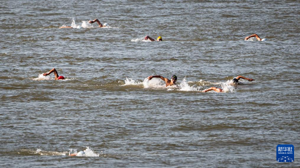 7月16日,參加男子搶渡賽的選手們在比賽中。新華社記者 杜子璇 攝