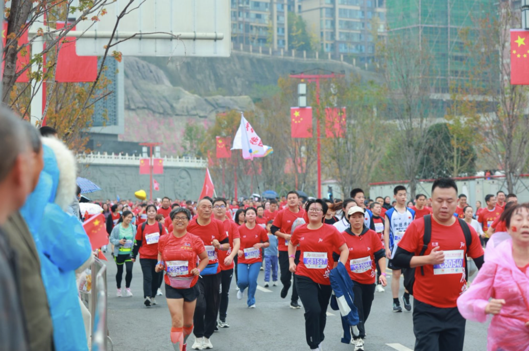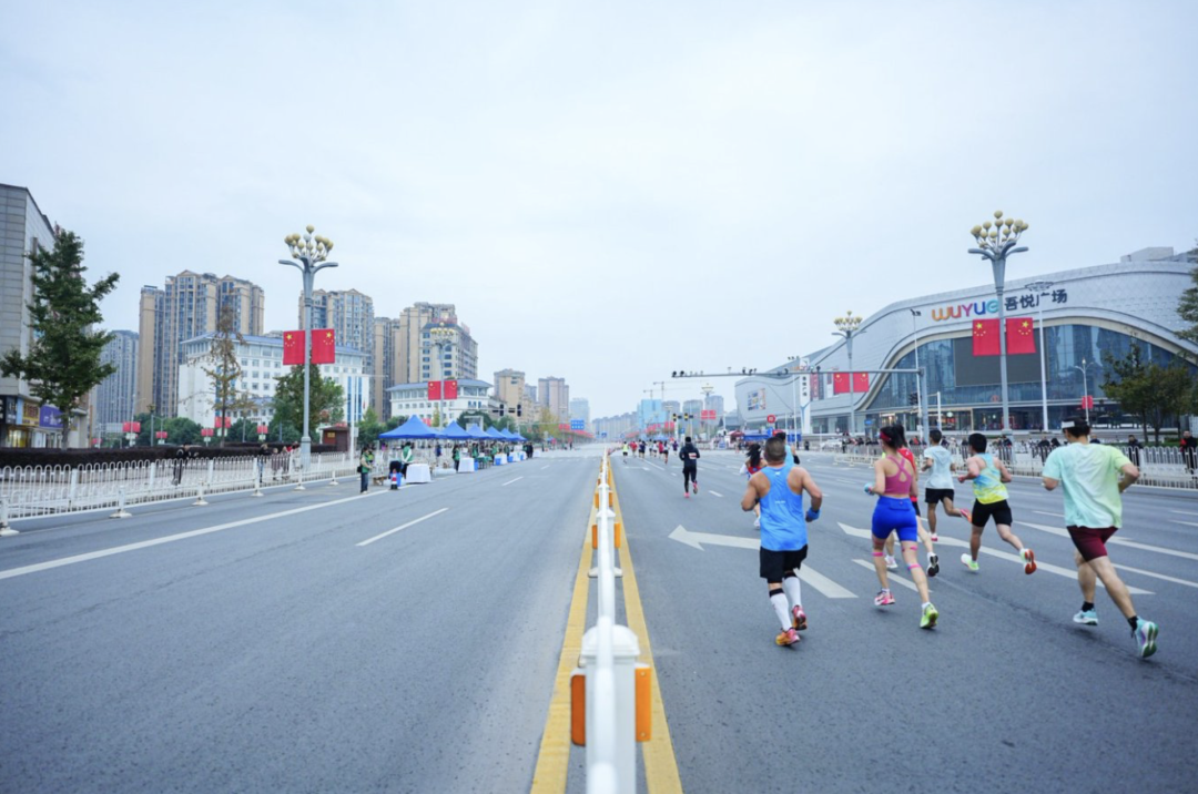 2024廣安馬拉松參賽選手通過吾悅廣場。(組委會 供圖)