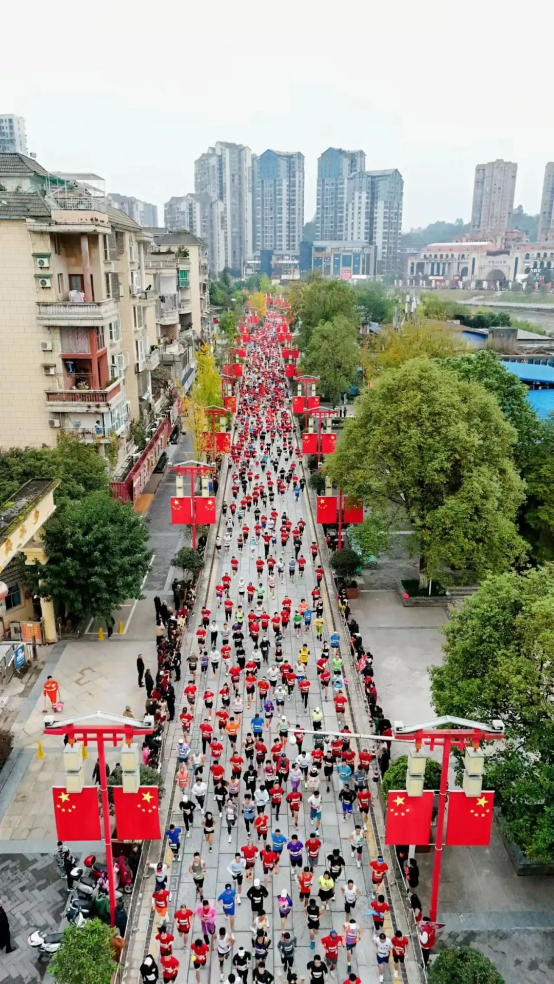 2024廣安馬拉松賽起跑航拍圖。(組委會 供圖)
