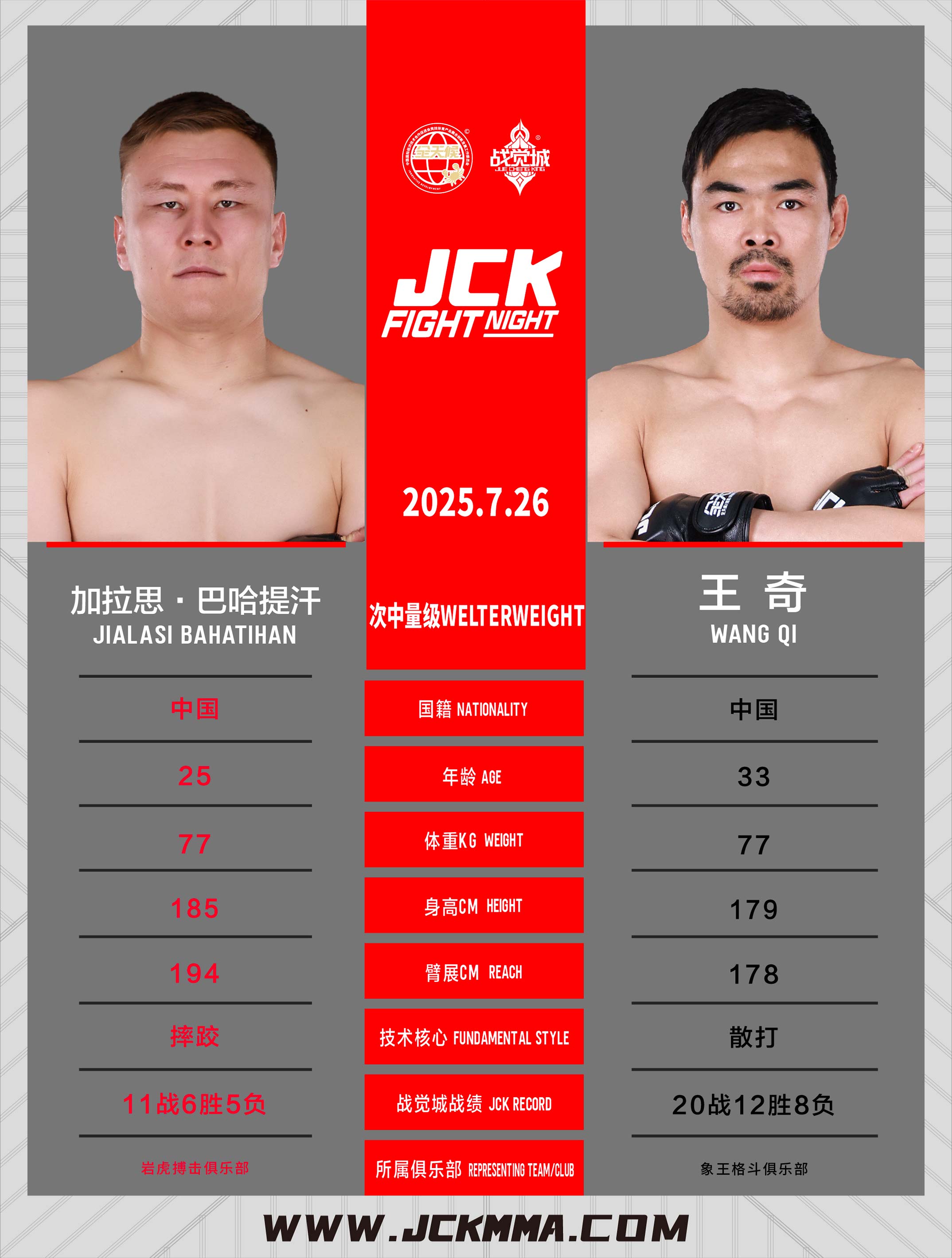 聯合主賽 次中量級 | 加拉思·巴哈提汗 VS 王奇