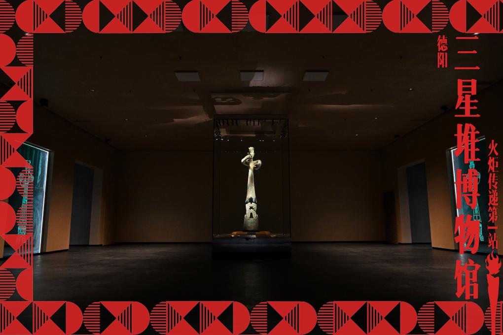 ↑2025年7月26日,火炬手馬龍在德陽三星堆博物館傳遞火炬。新華社記者 劉坤 攝