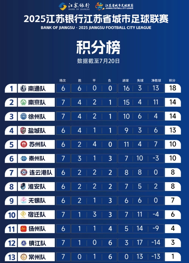 南通隊在前七輪豪取六連勝(輪空一輪),擊敗了目前積分榜2至4位的南京、徐州、鹽城和第六的泰州。